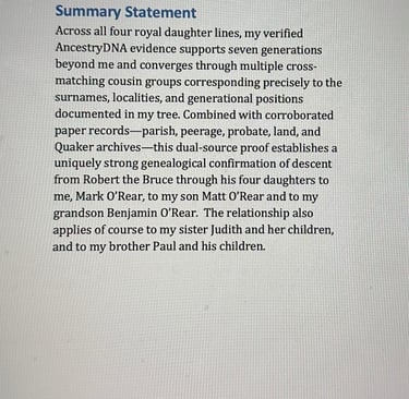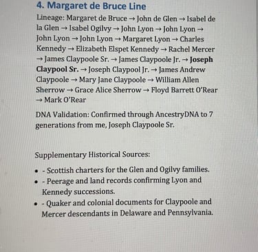 Each of Robert's daughters played a notable role in the political and social fabric of their time, and the likelihood of tracing direct descendants across all four lines is exceptionally low, especially combined with the DNA evidence that confirms these connections through seven generations.
